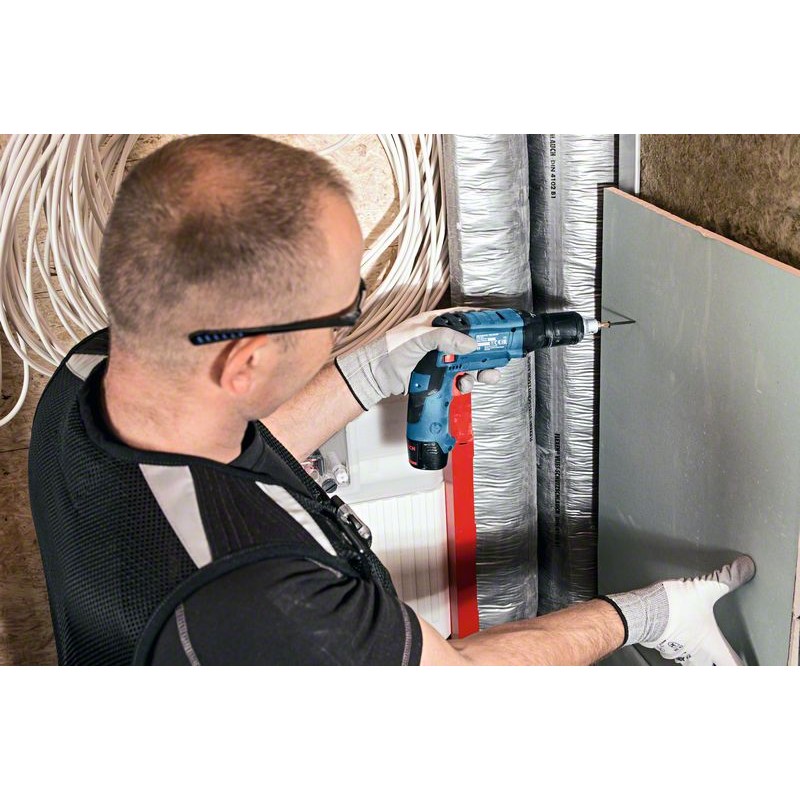 Аккумуляторный шуруповерт GSR 10,8 V-EC TE; Оптимальное решение для нерегулярных работ по сухой отделке: низкая цена, малый вес и высокая производительность.; Экономичное решение для нерегулярных работ по сухой отделке — заворачивание до 1200 шурупов на одной зарядке аккумулятора (2,5 А•ч); Компактное исполнение и малый вес для неутомительной работы — 0,9 кг (2,5 А•ч) и обхват рукоятки 207 мм; Двигатель Bosch EC с системой электронной защиты двигателя (EMP) + функция торможения двигателя — для долгого срока службы; Встроенная светодиодная подсветка для освещения рабочей зоны в темных местах; Удобный индикатор заряда аккумулятора с 3 светодиодами; Регулируемый ограничитель для точной настройки глубины заворачивания; Совместимость с магазином MA 55 Professional (опция) для серийного заворачивания; Реверс; Стандартный патрон для зажима обычных рабочих инструментов 1/4"; L-BOXX 102 (1 600 A00 1RP); Быстрозарядное устройство AL 1130 CV (2 607 225 133); 1 бита (PH2); Вкладыш для 1/2 кейса L-BOXX под инструмент (1 600 A00 3RB); 1/2 вкладыша для кейса L-BOXX, для зарядного устройства и аккумулятора; 2 аккумулятора 2,5 А*ч, Li-Ion (1 600 A00 4ZL)