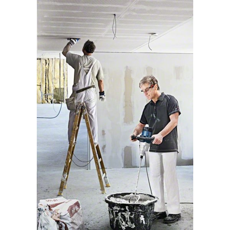 Электромешалки GRW 18-2 E; Мощный 2-скоростной инструмент для перемешивания различных материалов до 80 кг; 2-скоростная мешалка для размешивания жидких и густых материалов; Мощный двигатель 1 800 Вт (2 скорости); Эргономичная рама-рукоятка; Для мешальных корзин диам. до 180 мм; Электронный выключатель для плавного изменения частоты вращения; Предназначен для длительного использования в сложных условиях; Мешальная корзина 160 мм Ø